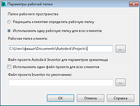 Файл проекта Autodesk Inventor по умолчанию в Vault может быть указан администратором.