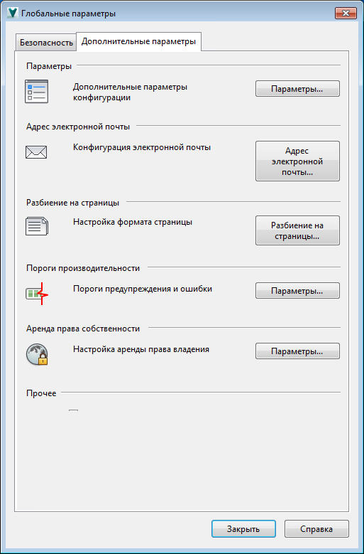 Доступ к дополнительным параметрам