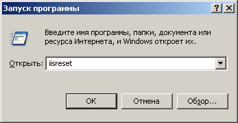 - В меню "Пуск" Windows выбрать "Выполнить…". Введите команду IISRESET, а затем нажмите кнопку "ОК", чтобы перезагрузить службы IIS.