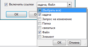 Каждое определение пользовательского объекта в хранилище будет отображаться в окне "Включить ссылки". Все ссылки, которые содержит пользовательский объект, будут выполняться на основе всех остальных объектов. Например, если администратор определил пользовательский объект "Задачи", а пользователь выбирает ссылки на задачи и файлы, то все файлы, связанные с задачами, будут включены в набор для загрузки.
