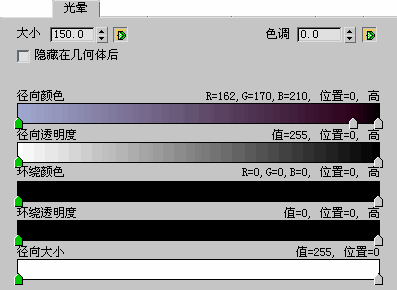 指定光晕颜色的等级。单击绿色箭头按钮可对此控件设置动画。此参数可设置动画。