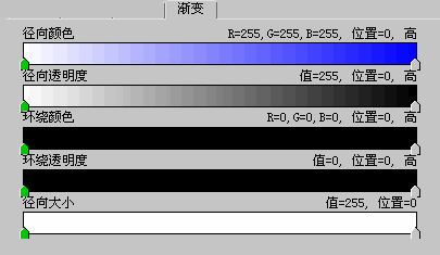 快捷菜单上最后五个选项是不同类型的合成方式。使用任意“镜头效果”过滤器中的“颜色”和“透明度”渐变控件时,必须注意“径向”和“环绕”渐变这两项。“同时锁定”两个“镜头效果”颜色渐变和两个“透明度”渐变,并根据所选定的合成方式一起使用来创建效果。