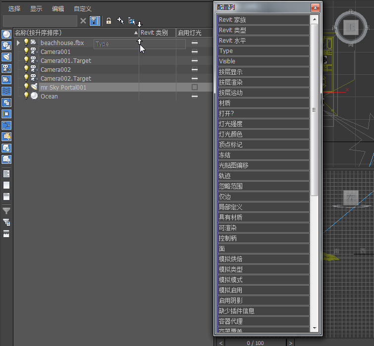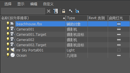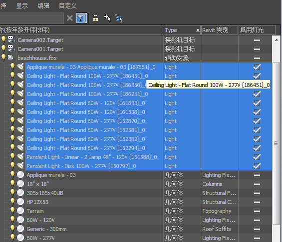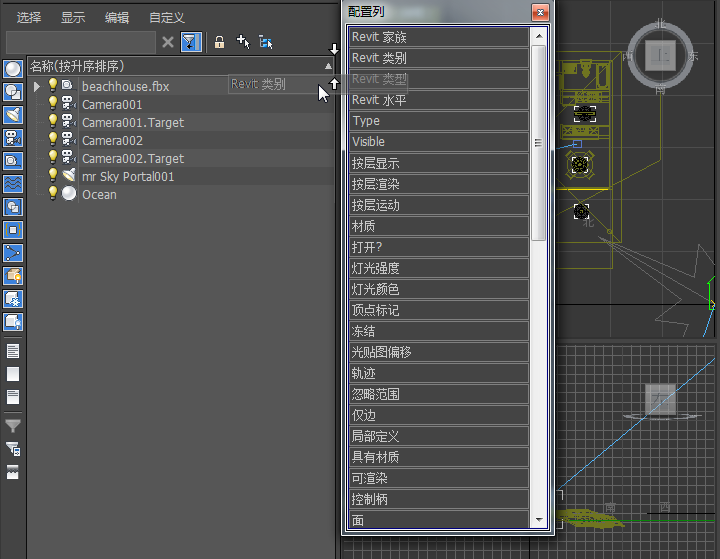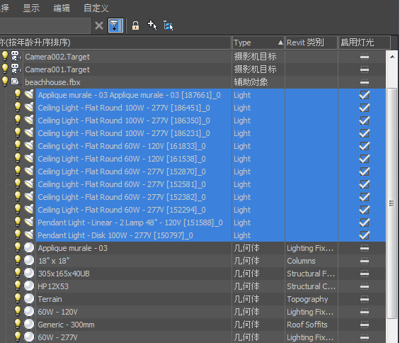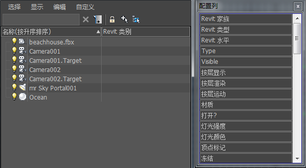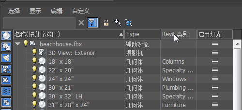 3ds Max 会将“Revit 类别”列添加到场景资源管理器。