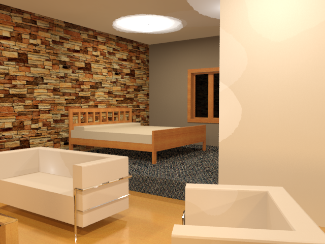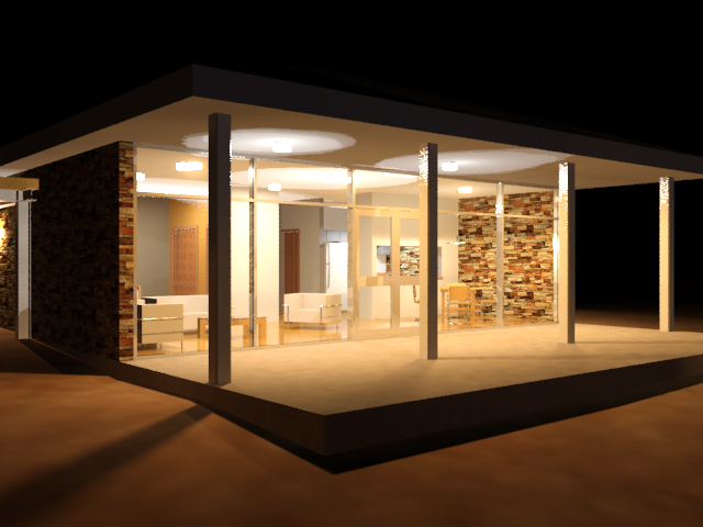 渲染夜间时分的室内: