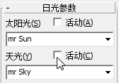 - 在“日光参数”卷展栏上,分别禁用“日光”和“天光”这两个对象的“活动”切换。