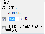 “暗淡”组中,将“结果强度”设置为 50 %(百分比)。