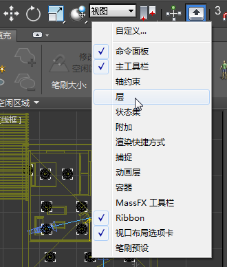 - 右键单击主工具栏的空白区域,从下拉菜单中选择“层”。