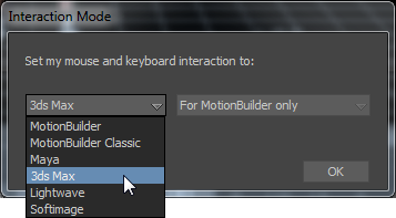 提示: 如果不熟悉标准的 MotionBuilder 鼠标和键盘导航快捷方式,您可以设置 MotionBuilder 以识别