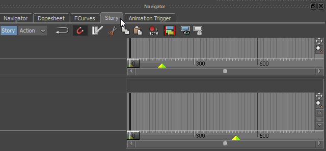 在“导航器”窗口(在“MotionBuilder”窗口的左下角),单击以转到“故事”选项卡。