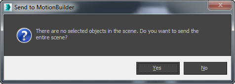 单击“是”以发送整个场景。 如尚未运行 MotionBuilder,则 3ds Max 启动 MotionBuilder。