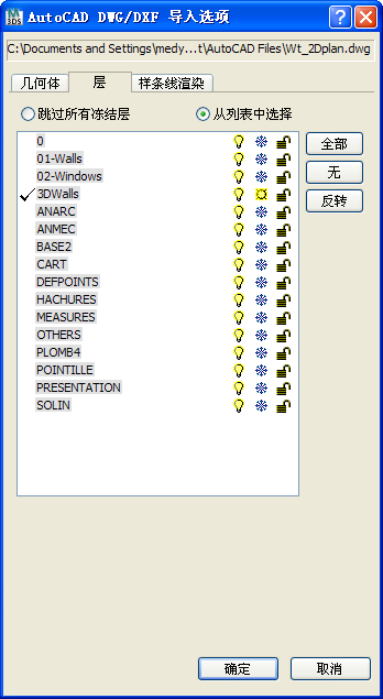 - 单击 3Dwalls 层将其选中,然后单击“确定”。