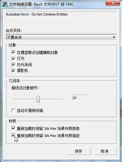 这些选项可确保链接场景或重新加载链接的场景时保留 3ds Max 材质。