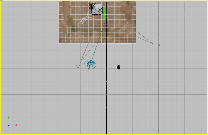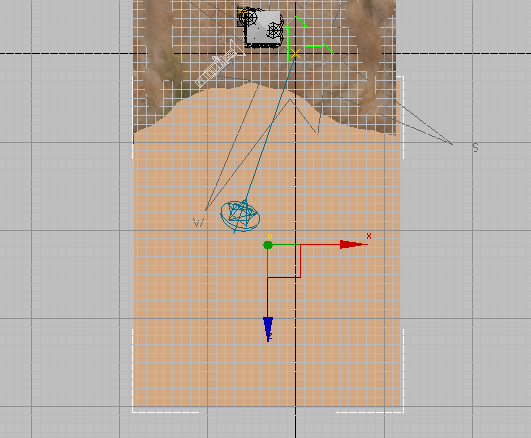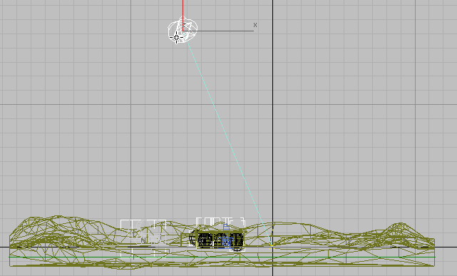 - 在“顶”视口中,拖动以创建一个与“地形”对象较下部分重叠的平面。