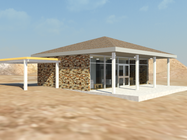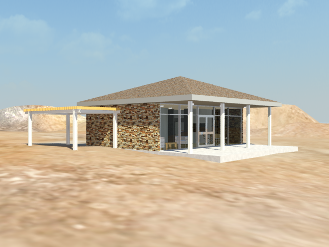 房屋看上去不错,但地形似乎过于规则,因为它尚未在 Revit 中优化。在后续的过程中,您将使用在 3ds Max 中创建的材质来替换地形材质。
