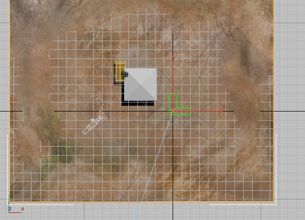 - 在“顶”视口中,缩小并平移,使地形区域变小并使房屋位于视口顶部。