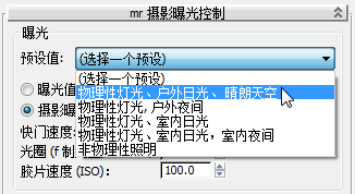 - 在“mr 摄影曝光控制”卷展栏上,选择“摄影曝光”。