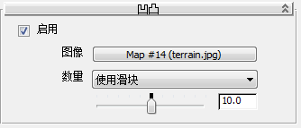 - 双击“地形”材质节点,以便可以查看其参数。向下滚动到“凹凸”卷展栏,单击以打开“启用”。