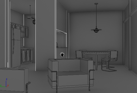 提示: 要减少渲染时间,可以使用 “渲染设置”对话框将渲染帧的分辨率大小更改为小于 640 x 480(我们针对室内场景提供的默认值)。