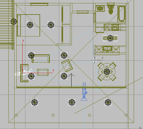 1. 激活“顶”视口并 放大到可以看见房屋楼层平面图。