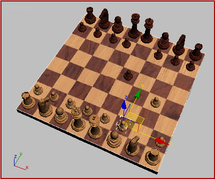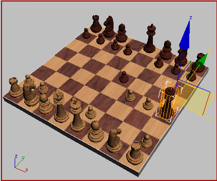 选择位于右下角的白方马前兵。如果未显示变换 Gizmo,则需右键单击,然后从四元菜单中选择