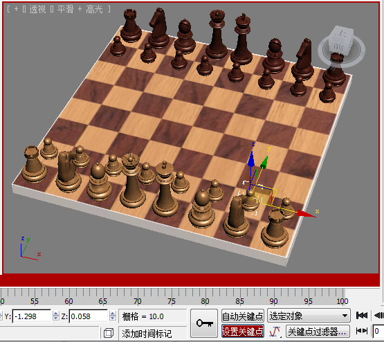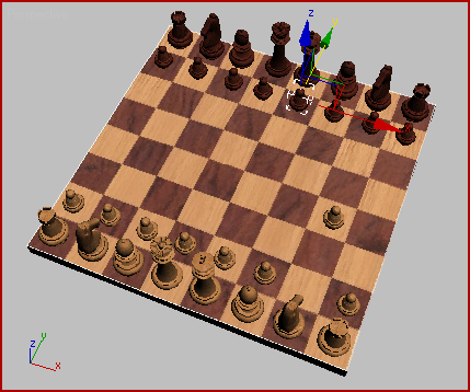 播放动画。白方王离开棋盘,但是并未旋转,因为“关键点过滤器”不允许在旋转轨迹上进行键控设置。