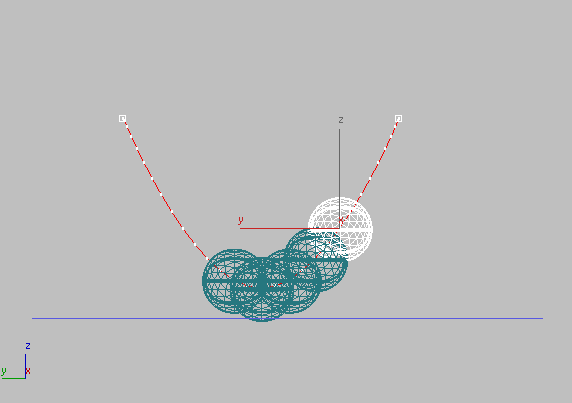 “显示重影”以将其启用。 现在,当您拖动时间滑块时,视口会显示球所历经的位置的重影图像。
