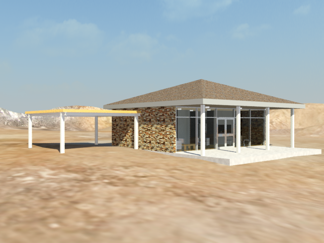 9. 激活“3D 视图: 室外”视口,然后 渲染场景。