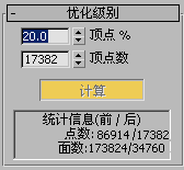 “ProOptimizer”修改器将分析模型。计算完成后,“计算”按钮下方的文本框中将显示模型的统计信息。