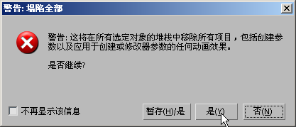 3ds Max 将显示有关塌陷堆栈的警告。单击“是”。