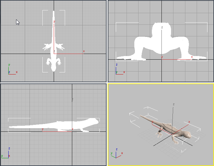 Mudbox 将启动 3ds Max。片刻后,蜥蜴模型将显示在视口中。它已经被选中。