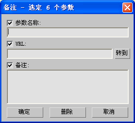 “注释”对话框用于输入在“参数收集器”中选择的一个或多个参数的名称、URL 和注释。