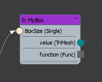 一个节点的输入连接器 (BoxSize) 位于左侧,“值”和“函数”输出位于右侧