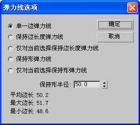 创建形弹力线的半径。在顶点超出该距离之外不创建形弹力线。