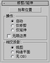 编辑/可编辑样条线”包含交互式修剪/延伸功能。改用此修改器,在堆栈的特定位置应用修剪/延伸效果,或在希望使用“相交投影”选项时应用修剪/延伸效果。