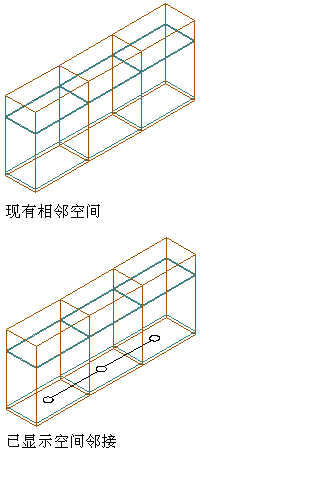 大多数情况下,空间曲面之间的相邻关系对于将建筑平面输出到工程处理应用程序以及在该程序中处理建筑平面非常重要。如果需要在 AutoCAD Architecture 中检查相邻关系的状态,可将相邻关系设置为在图形中可见。