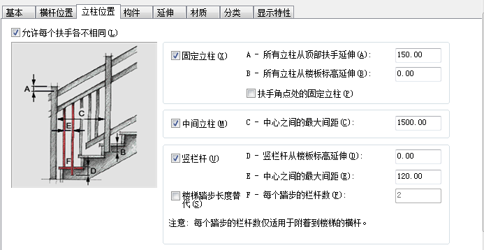 | 指定所有立柱从楼板开始的高度 | 输入“所有立柱从楼板标高延伸”值。 |