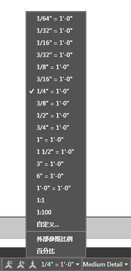 从“注释比例”弹出型菜单中选择一个注释比例,便可以指定当前的注释比例。