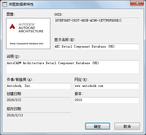 | 说明 | 该数据库在“详图构件管理器”的“信息”选项卡上显示的说明。这是可选字段。 |