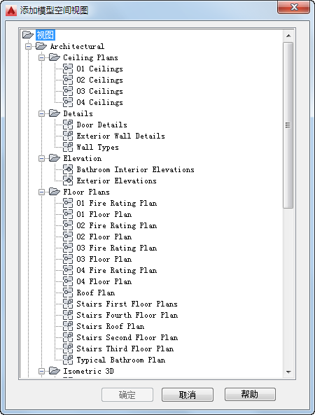 - 在“添加模型空间视图”对话框中,选择要放置模型空间视图的项目视图图形,然后单击“确定”。