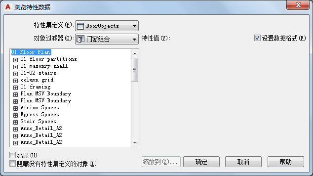 | 仅显示在某层上已附着所选特性集的那些对象 | 清除“隐藏没有特性集定义的对象”。 |