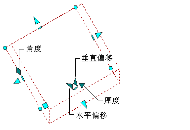 屋顶板“角度”、“厚度”、“水平偏移”和“垂直偏移”夹点