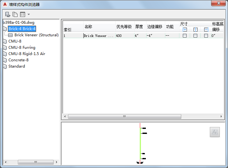 使用“墙样式部件浏览器”实用程序,可以查看和复制当前图形和其它图形中墙样式的墙部件。可以将构件从这些样式复制到当前的墙样式。将它们添加到墙样式后,可以根据您正在编辑的样式需要修改它们的特性。