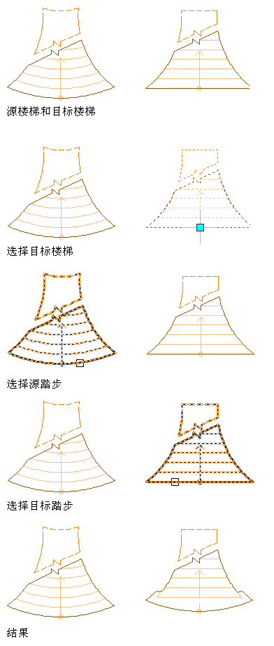 使用以下步骤,通过与另一个自定义楼梯上的现有踏步相匹配,可以修改自定义楼梯踏步。