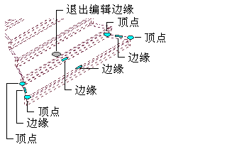 您可以选择边缘或顶点夹点以修改踏步的面。将显示下列用来编辑自定义楼梯踏步面的夹点: