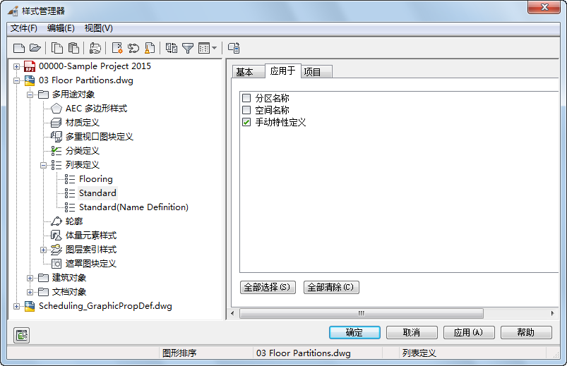 将显示“样式管理器”,并且在树状视图中展开当前图形。