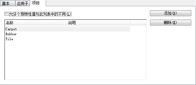 - 如果希望不在此处指定的值在“特性”选项板上显示,请从该列表中选择“允许个别特性值与此列表中的不同”。