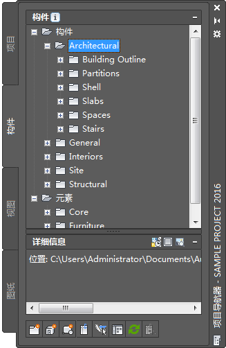对于 AutoCAD Architecture 中的各个建筑项目,下列基本类别结构显示在“项目导航器”选项板的“项目”选项卡中: