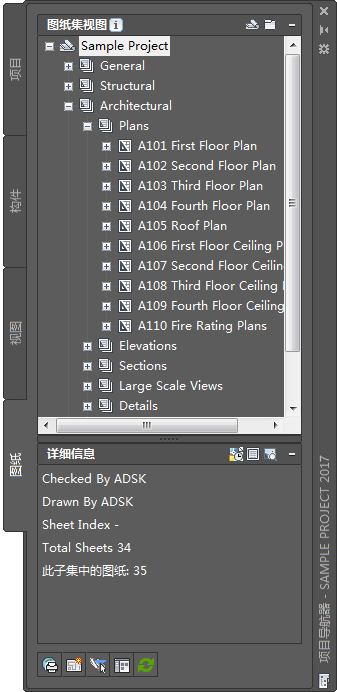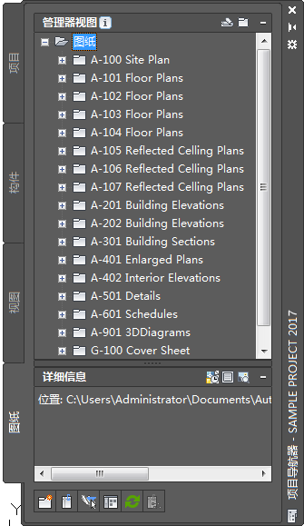 可以将图纸重新整理到图纸集视图内的不同子集中,但这样不会改变它们在类别或文件夹中的物理位置。同样,如果从“图纸集视图”的图纸子集中删除图纸,只会删除该图纸到子集的参照;布局自身及所属图纸图形不会从“Sheets”文件夹或其子文件夹中删除。