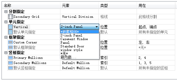 - 展开“建筑对象”,然后展开“幕墙单元样式”。