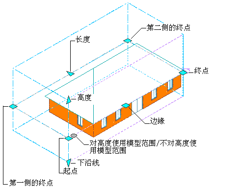 3. 选择“模型范围”夹点,以便对剖面高度禁用模型范围。